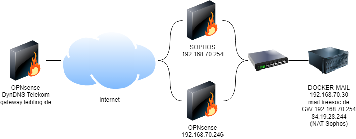 Docker Mail ist eine Ubuntu VM, welche im RZ steht in einem eigenem Netz (192.168.70.0/24, VLAN 70).