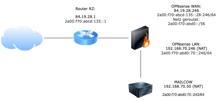 Wenn alle Probleme behoben sind, kommt ins RZ ein eigener HP DL 360 Gen9 Host mit Proxmox Virtual Environment (kurz PVE) und alles läuft dann nur noch über die OPNsense.