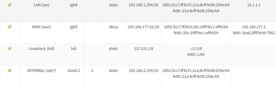 - Prüfen Sie nach de Speichern nun die Einstellungen unter Interfaces > Overview: